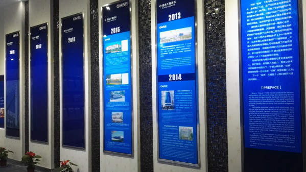 2016 年4月 18日,投资数拾万元,聘请当地最资深电梯展厅设计大师精心设计,历时数月用心装修的华亿网页版公司展示厅隆重开门迎客。走进华亿网页版展示厅,呈现给你的是蓝白相间的视觉艺术,大面积蓝色的主打基调,蕴含着华亿网页版人如大海般广阔的胸襟;白色的辅助色,是一个恰当好处的衬托,视觉上倍显洁净利落。整个展厅,设计师想通过图文、照片、实物来层层铺展与表述出世界电梯与中国电梯 “互联”的发展历史,华亿网页版的人文情怀,走过的辉煌岁月,经典项目的记忆,最新科技产品成果。基于这些表达的需求,整个展厅通过不规则“S型”展板的设计被划分成几个功能性区域,沿着参观通道,让参观者驻足在每个区域面前都能去触摸与感悟到华亿网页版人想要表达主题所在。