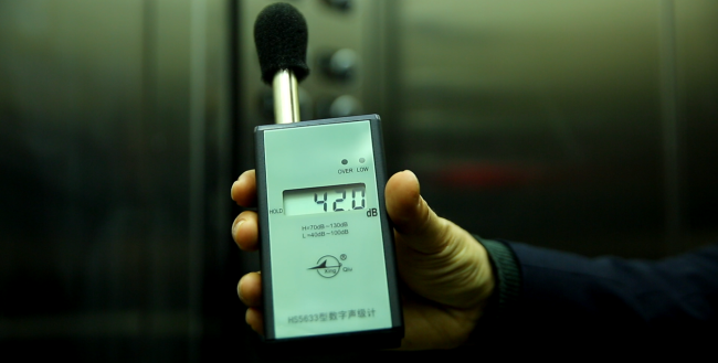 产品品质--电梯运行时轿厢内的噪音值(42分贝)