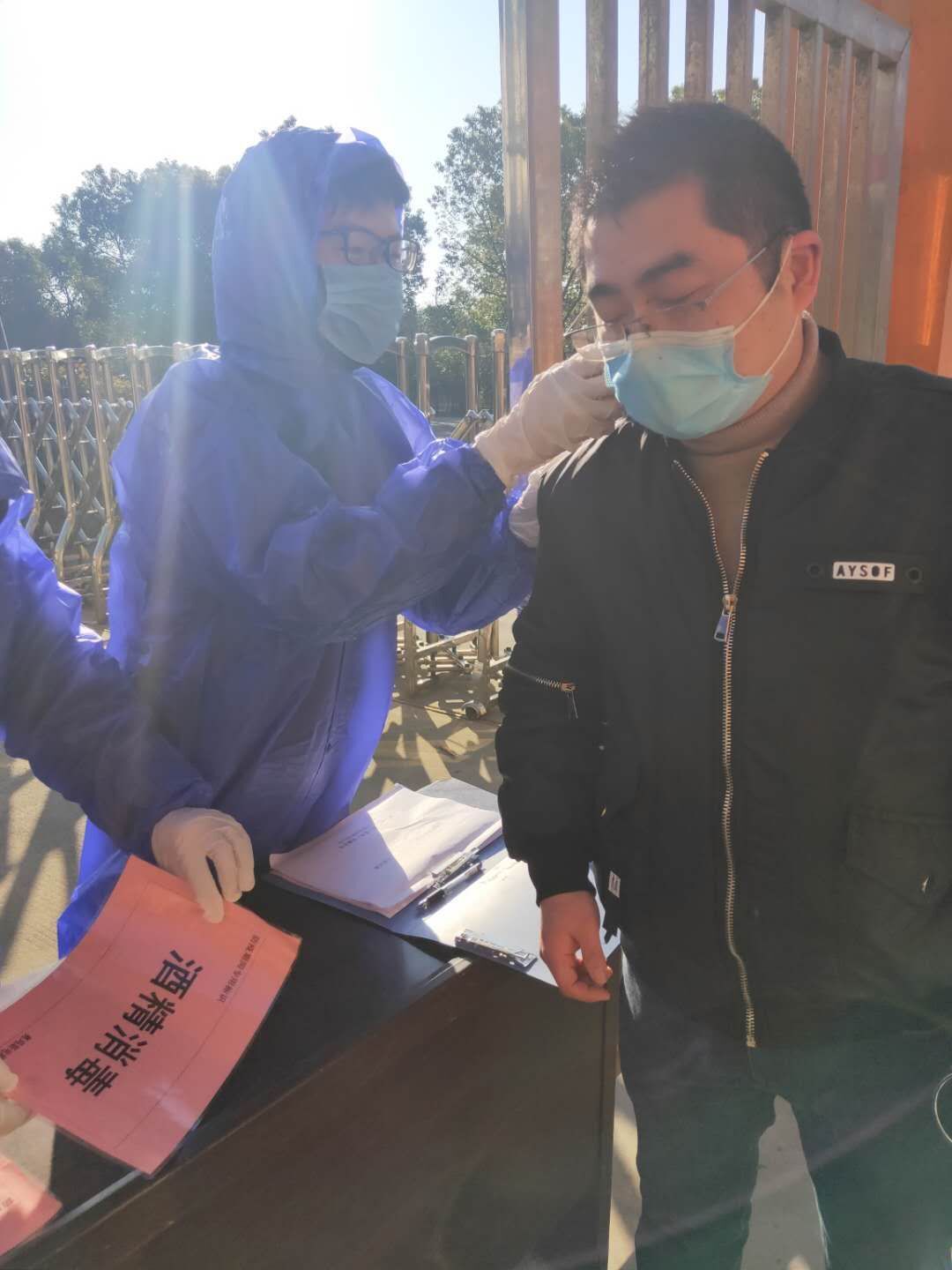 2020年2月18日,一个阳光明媚的日子。历经前期的精心准备,华亿网页版公司迎来了初批22名复工员工的到来。按照““新冠肺炎防控预案细则”要求,所有进入厂区的员工都得经过严格的体温监测、领取一次性医用口罩等环节,并经确认符合要求后才准入(见下图所示)。